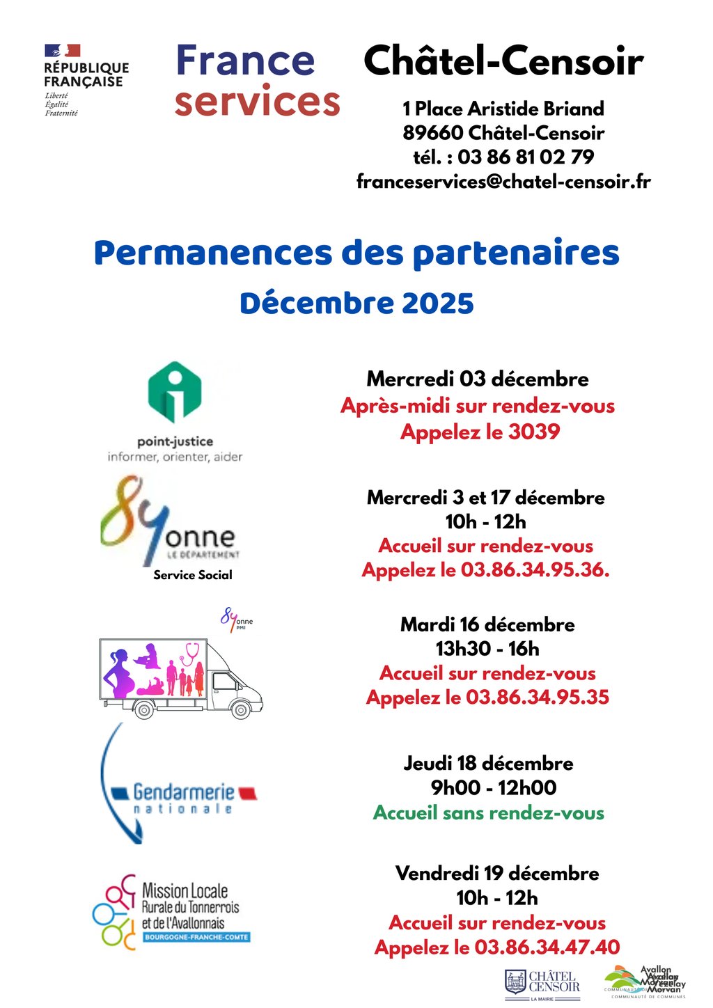 PERMANENCES DE LA FRANCE SERVICES DÉCEMBRE