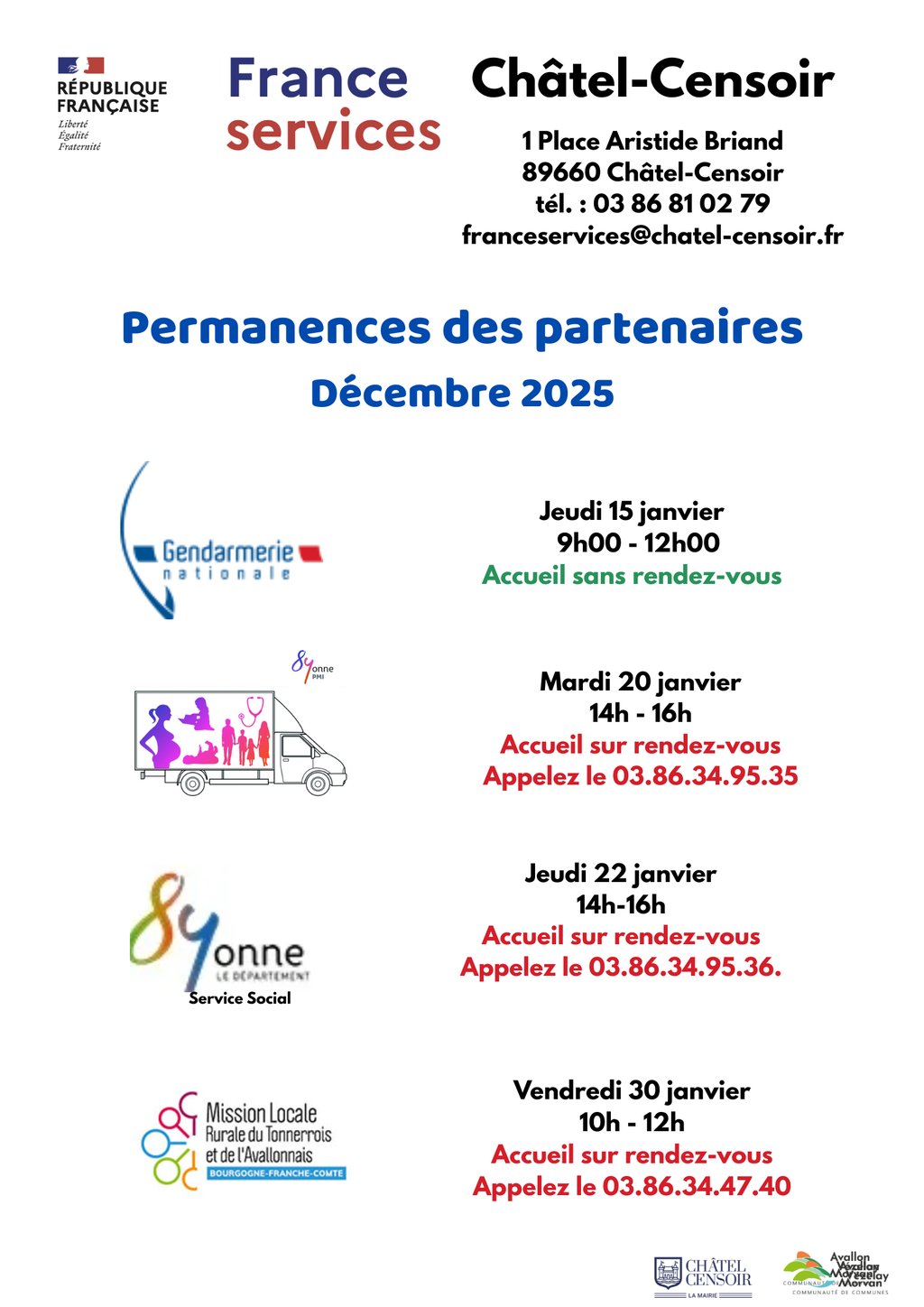 PLANNING DES PERMANENCES À LA FRANCE SERVICES
