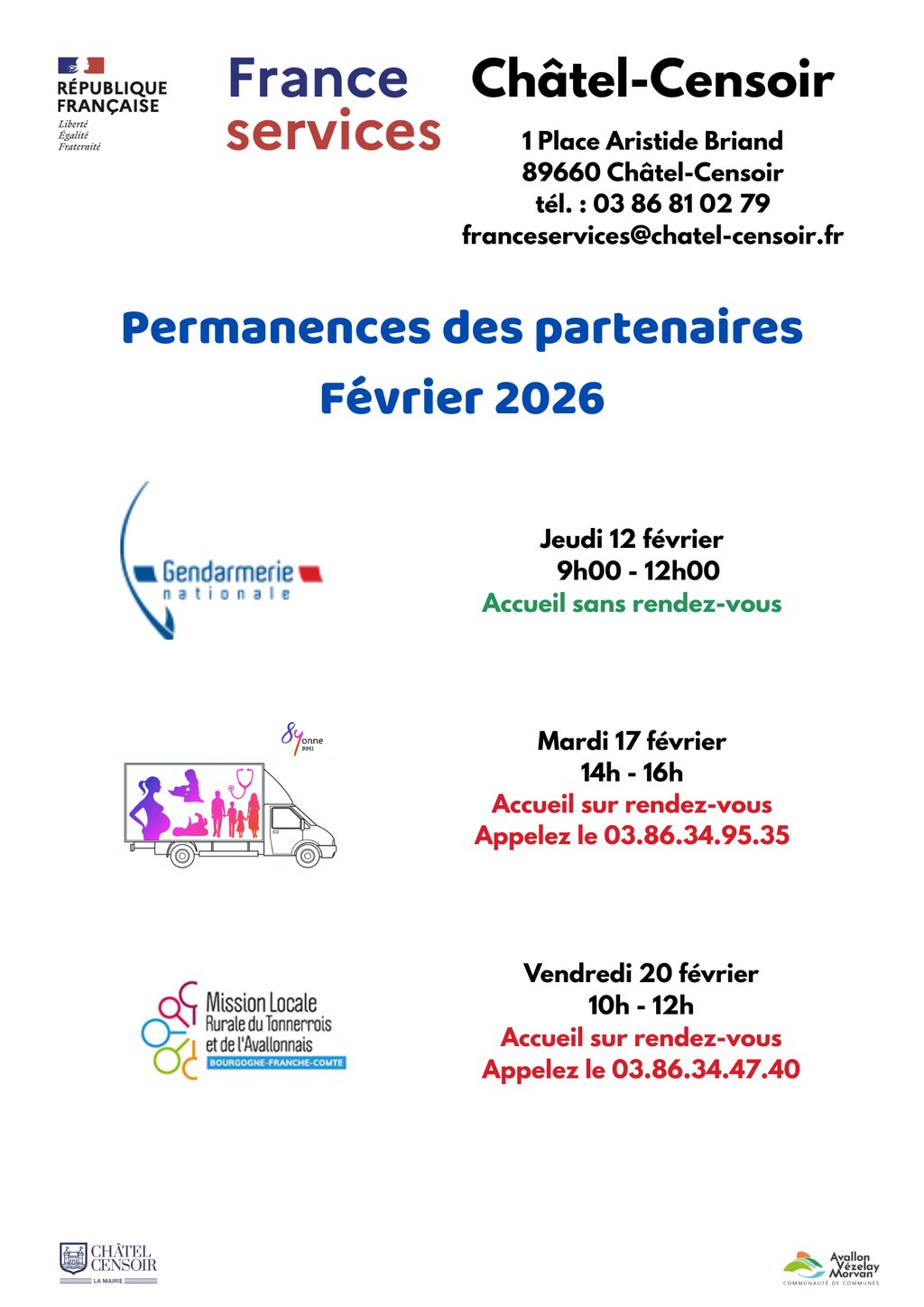 PERMANENCES DES PARTENAIRES FRANCE SERVICES FÉVRIER 2026