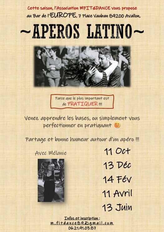 Le bar de l'Europe vous propose ses "Apéros Latino". Venez apprendre les bases ou simplement vous perfectionner en pratiquant les danses latino avec Mélanie! Partage et bonne humeur autour d'un apéro avec un verre de punch offert ! Restauration et consommation sur place.