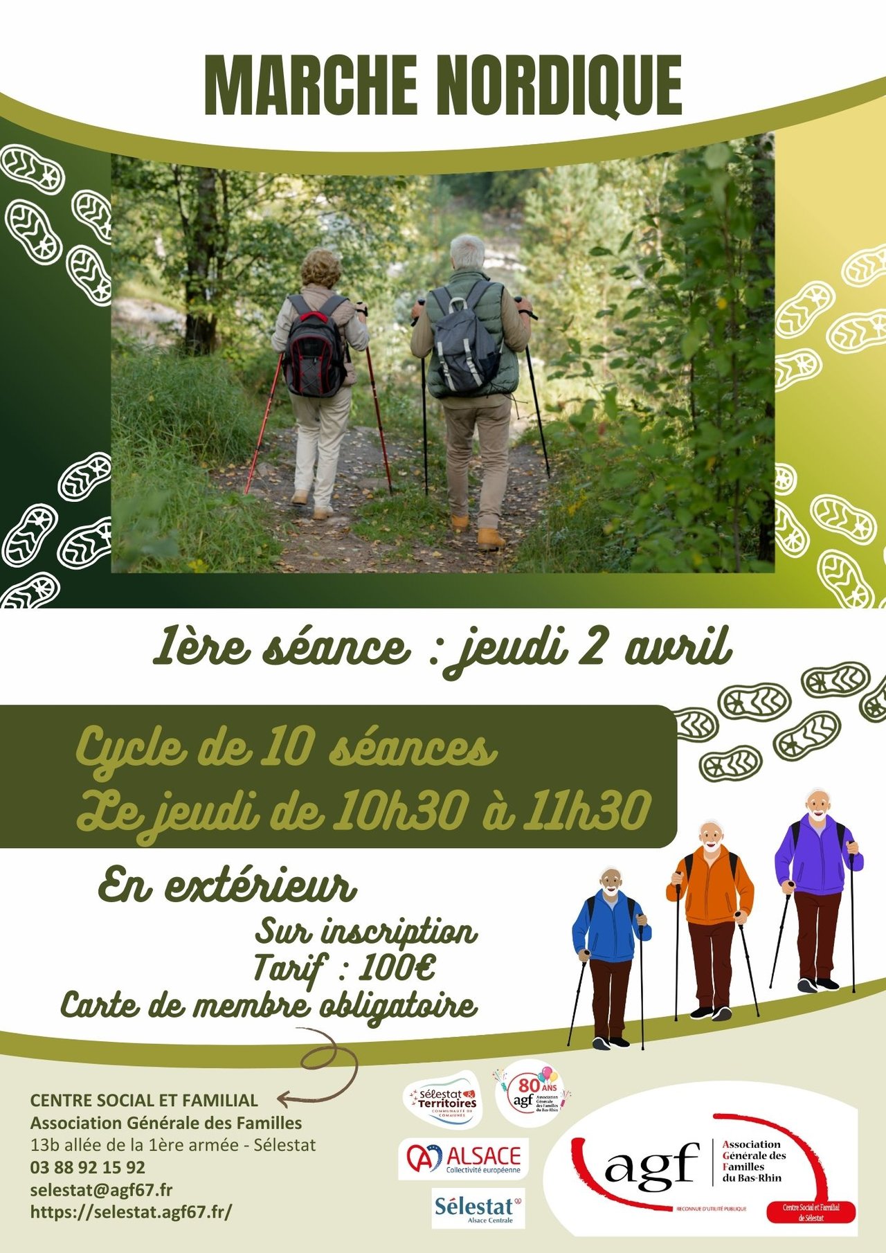 Cycle de 10 séances de marche nordique le jeudi matin de 10h30 à 11h30.