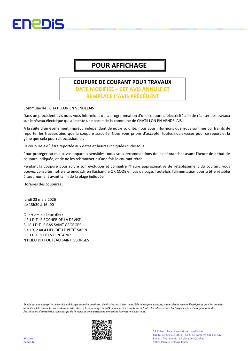 Coupures de courant: travaux