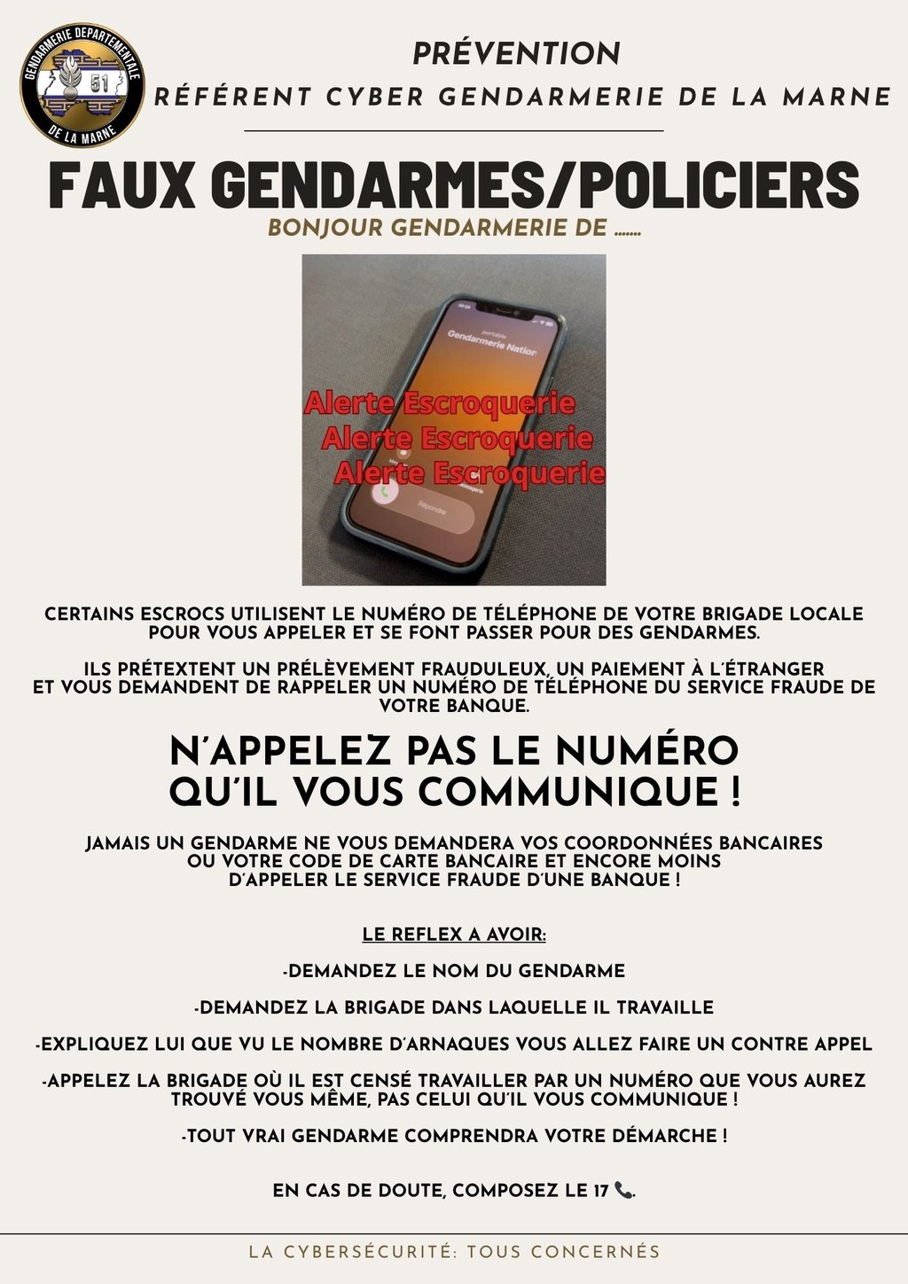 ⚠️ ALERTE – TENTATIVES D’ESCROQUERIE PAR DE FAUX GENDARMES / POLICIERS
