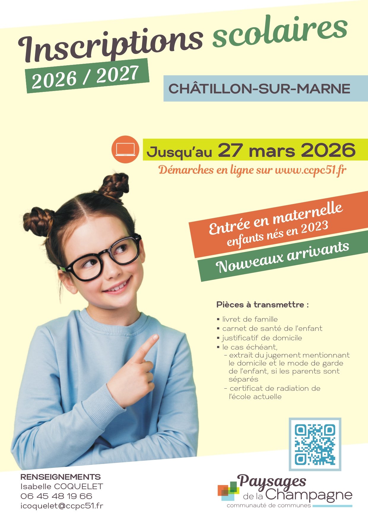 Les démarches d’inscription sont à effectuer auprès de la Communauté de Communes des Paysages de la Champagne (CCPC).