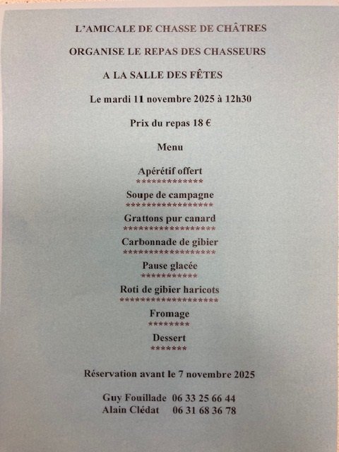 REPAS DE L'AMICALE DE CHASSE DE CHÂTRES