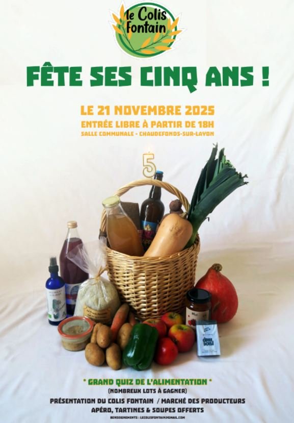 5 ANS DU COLIS-FONTAIN - ORGANISATION D'UNE SOIRÉE FESTIVE LE 21 NOV À LA SALLE COMMUNALE DÈS 18H