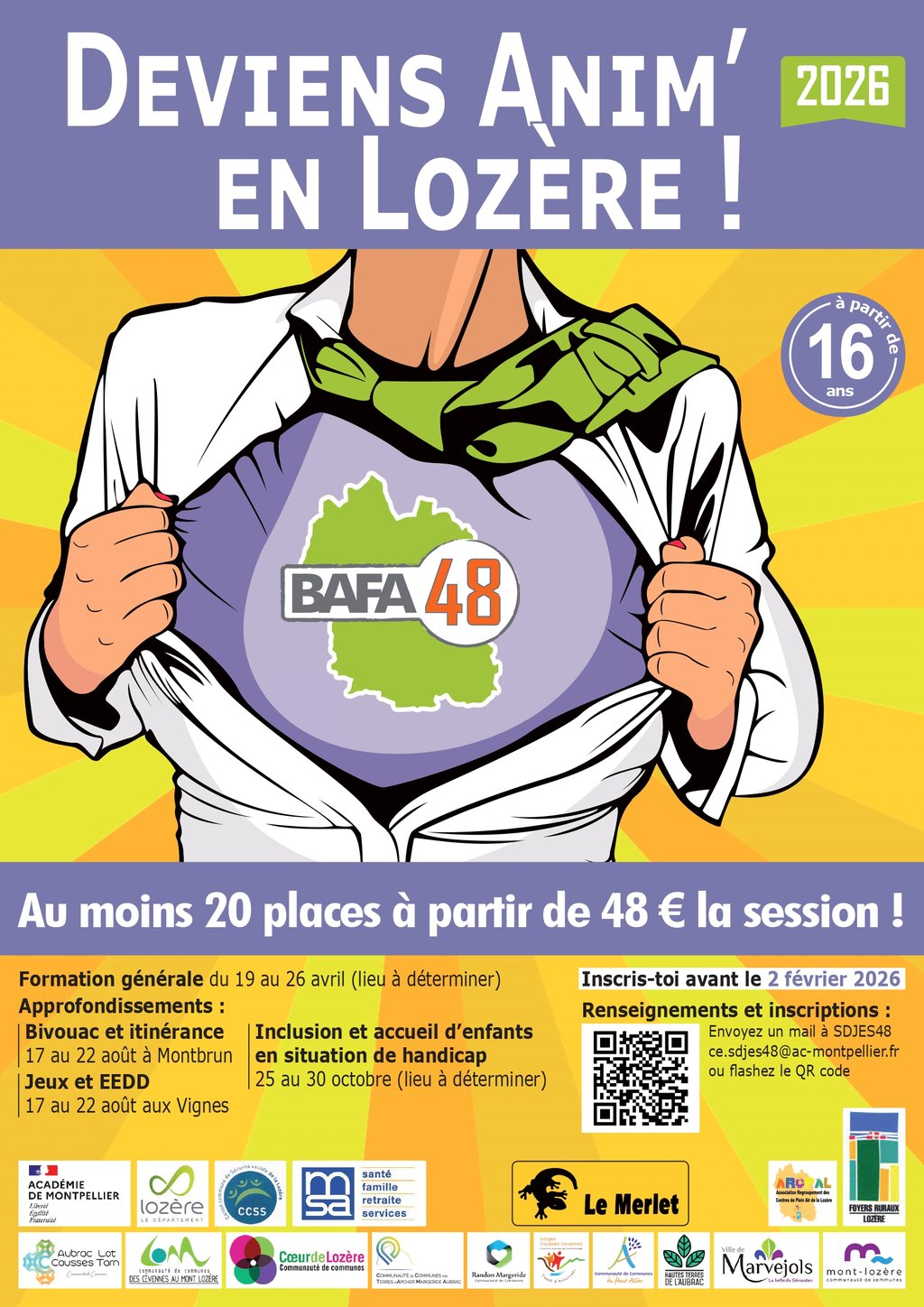 Les inscriptions 2026 sont ouvertes avant le 2 février, un simple formulaire en ligne est à compléter : https://framaforms.org/bafa-48-1617698424