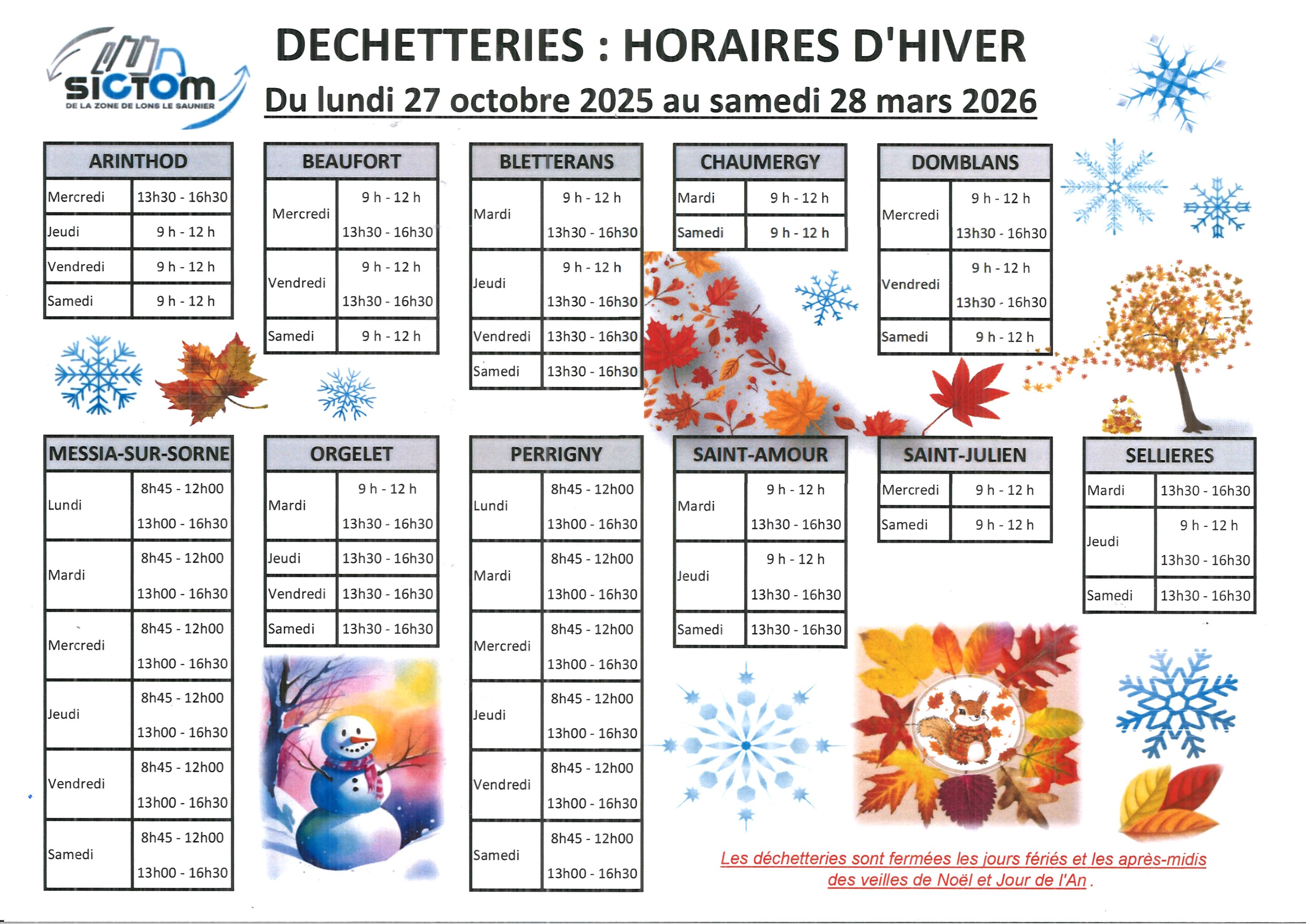 Voici les nouveaux horaires valables du lundi 27 octobre 2025 au samedi 28 mars 2026