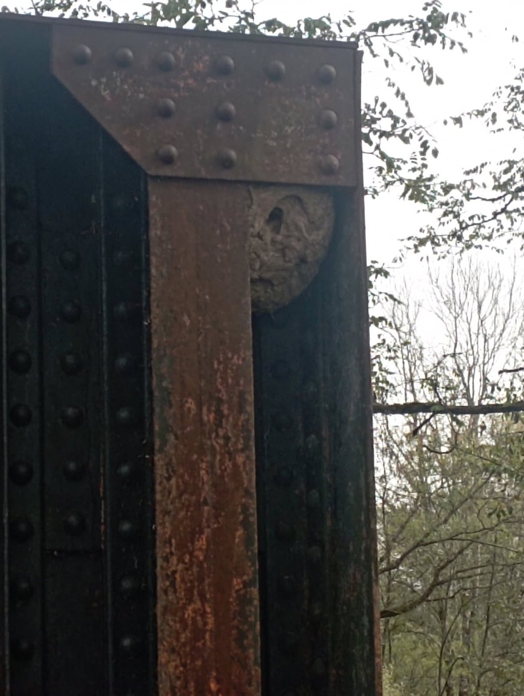ATTENTION : Ce nid est colonisé et actif, nous ignorons s'il s'agit de frelons européens ou asiatiques.