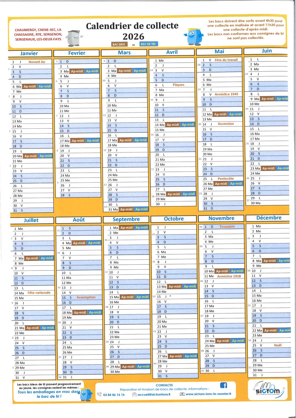 Voici le planning pour 2026, il sera distribué dans toutes les boites aux lettres prochainement.