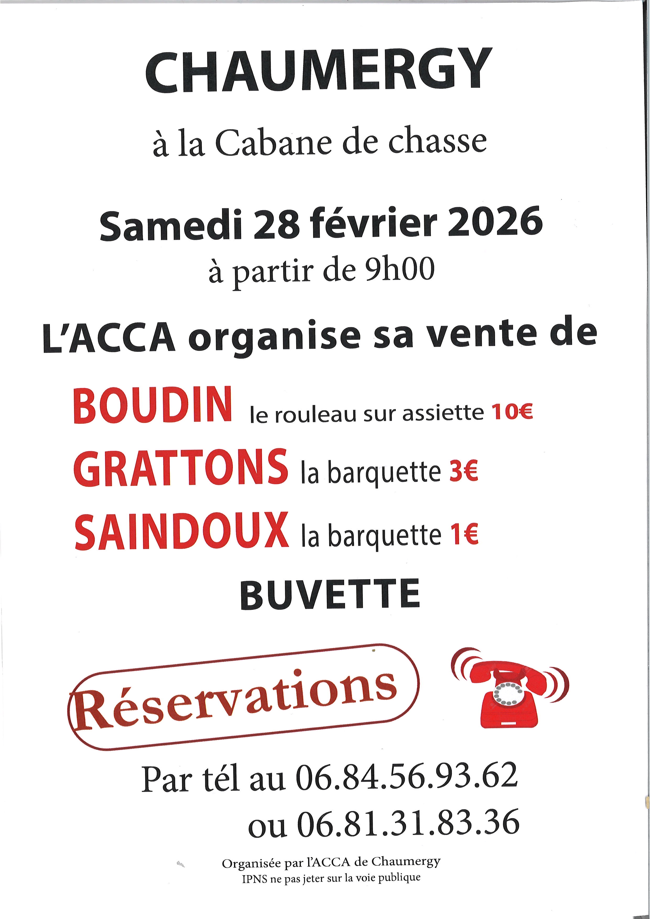 SAMEDI 28 FEVRIER 2026 à partir de 9h00 au pavillon de Chasse.