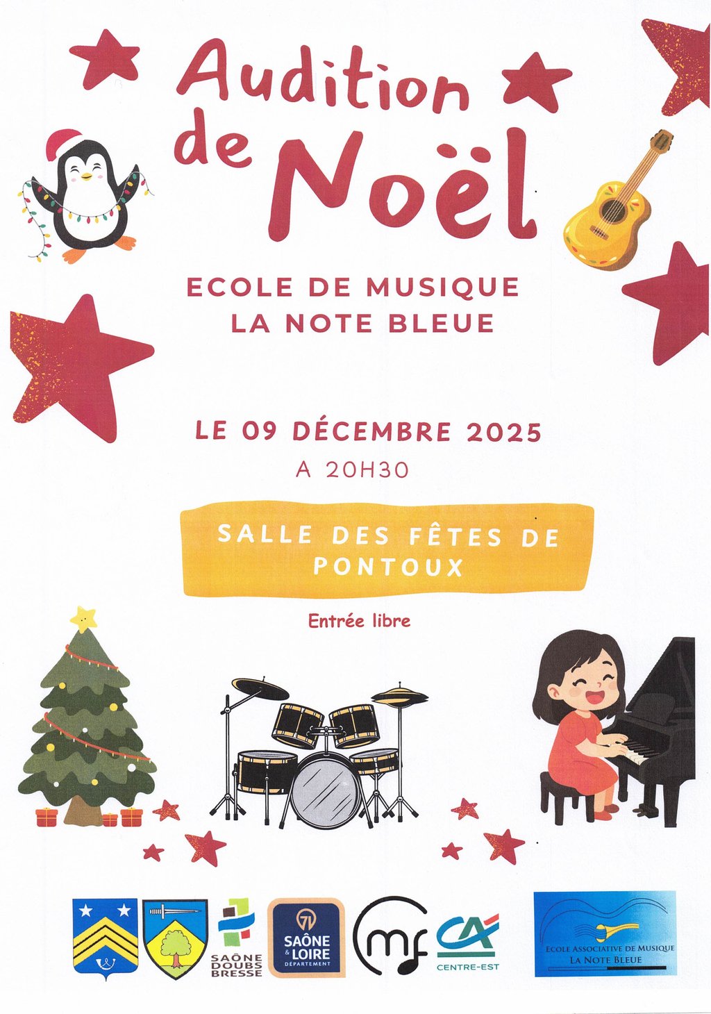AUDITION DE L ECOLE DE MUSIQUE "LA NOTE BLEUE" LE 9/12/2025 A 20H30 SALLE DES FETES DE PONTOUX