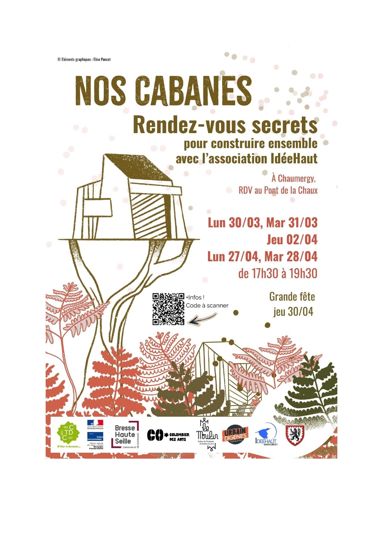 - Ateliers immersifs dans et sous les arbres, proposés par un professionnel de la grimpe encadrée dans les arbres, Benoit Grosjean, association IdéeHaut.