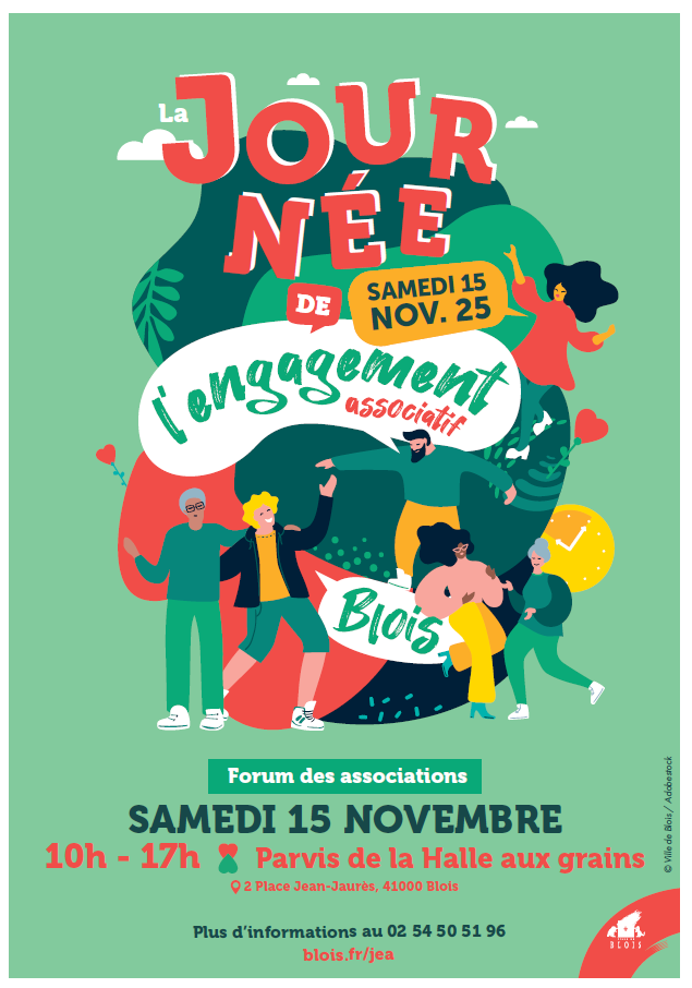 Pour information une Journée de l'engagement associatif est organisée le samedi 15 novembre 2025 de 10h à 17h sur le Parvis de la Halle aux grains, à Blois.