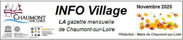 Voici l’INFO Village du mois de novembre, lettre d’information mensuelle de la commune de Chaumont-sur-Loire.