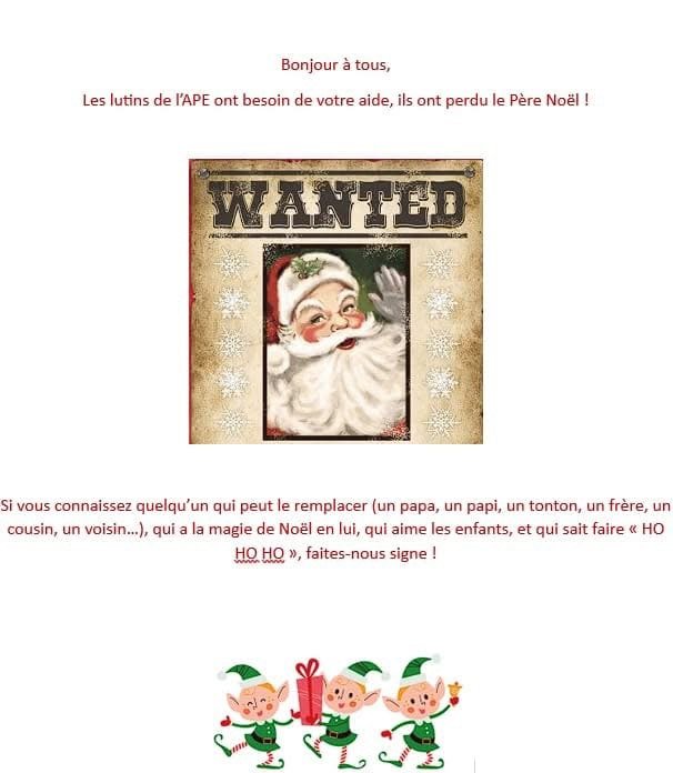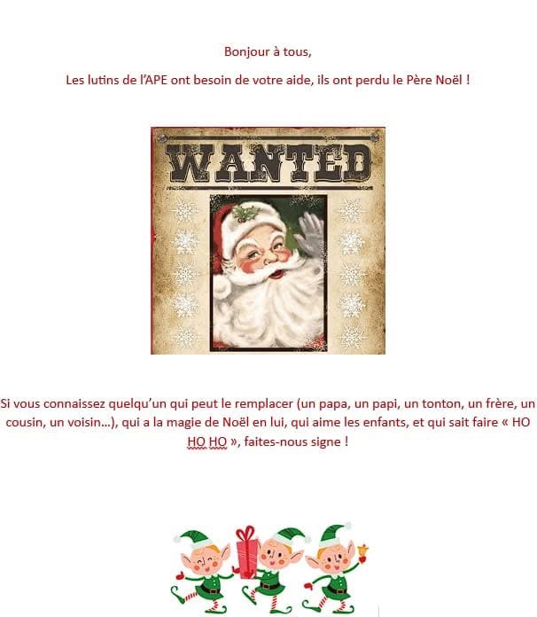 L'association des Parents d'Élèves de Chaumont-sur-Loire est à la recherche du Père Noël pour la fête de Noël de l'école le 12 décembre prochain.