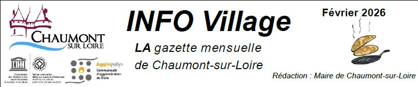 Voici l’INFO Village du mois de février, lettre d’information mensuelle de la commune de Chaumont-sur-Loire, 66ème numéro et probable dernier du mandat.