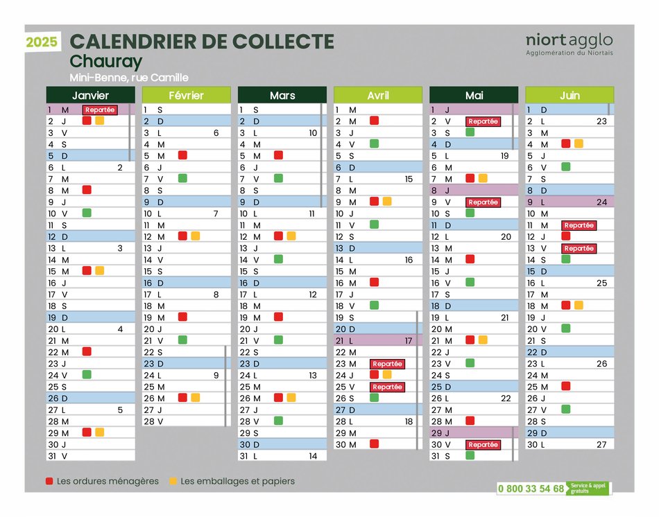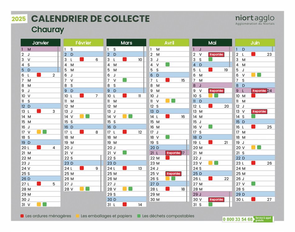 ➡ Nouveau calendrier des jours de collecte des déchets sur la commune de Chauray.