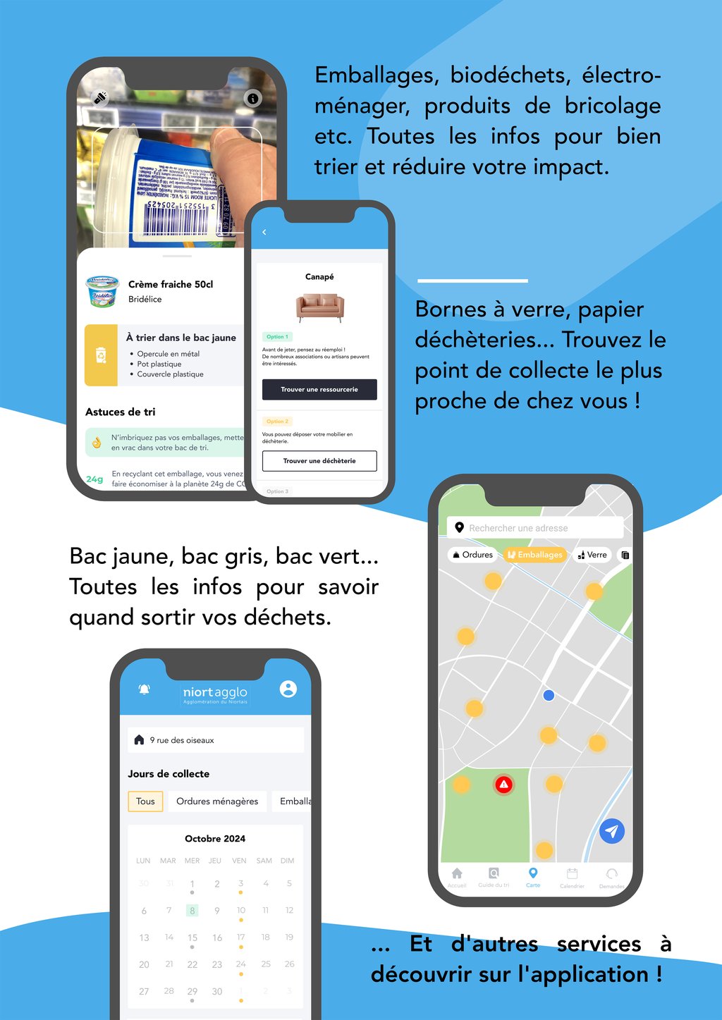> de localiser facilement les points d’apport volontaire (verre, emballages), les déchèteries, les ressourceries les plus proches