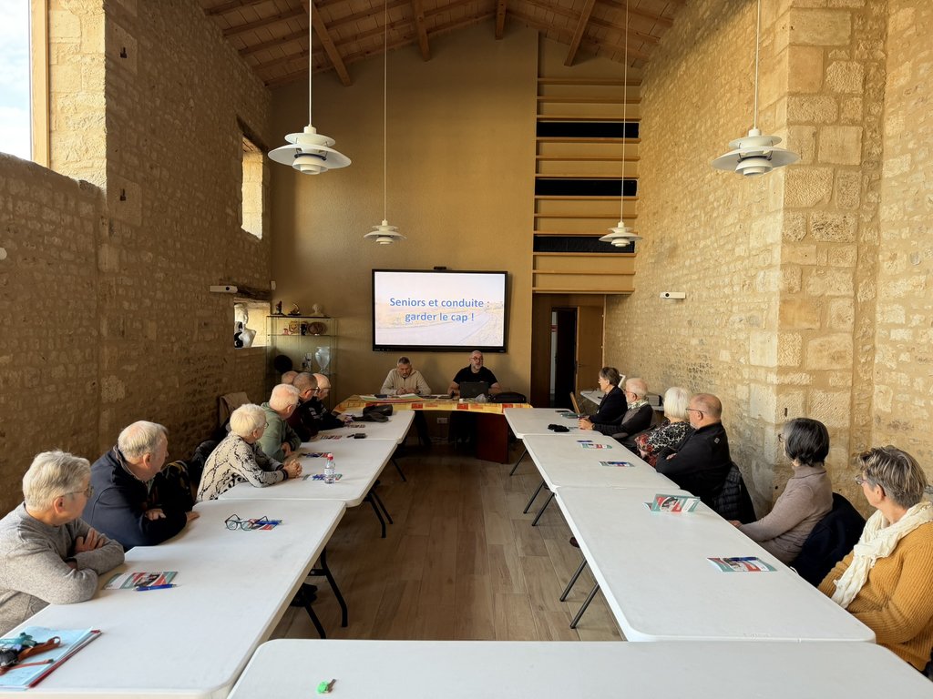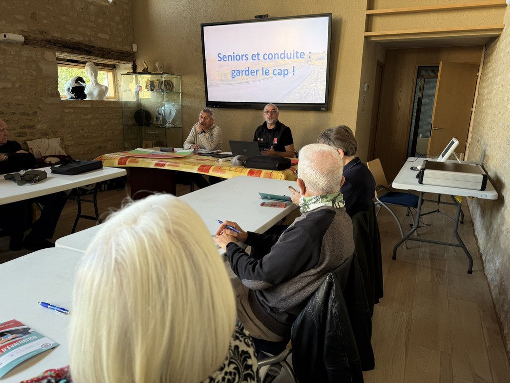 🎯 L’objectif de cette sensibilisation était d’informer les conducteurs seniors aux risques du vieillissement liés à la conduite. Outre la présentation de l’aspect règlementaire, des ateliers de mise en situation ont ponctué ce temps collectif (réflexes visuels et sonores, vue, ouïe, motricité – connaissances code de la route…)