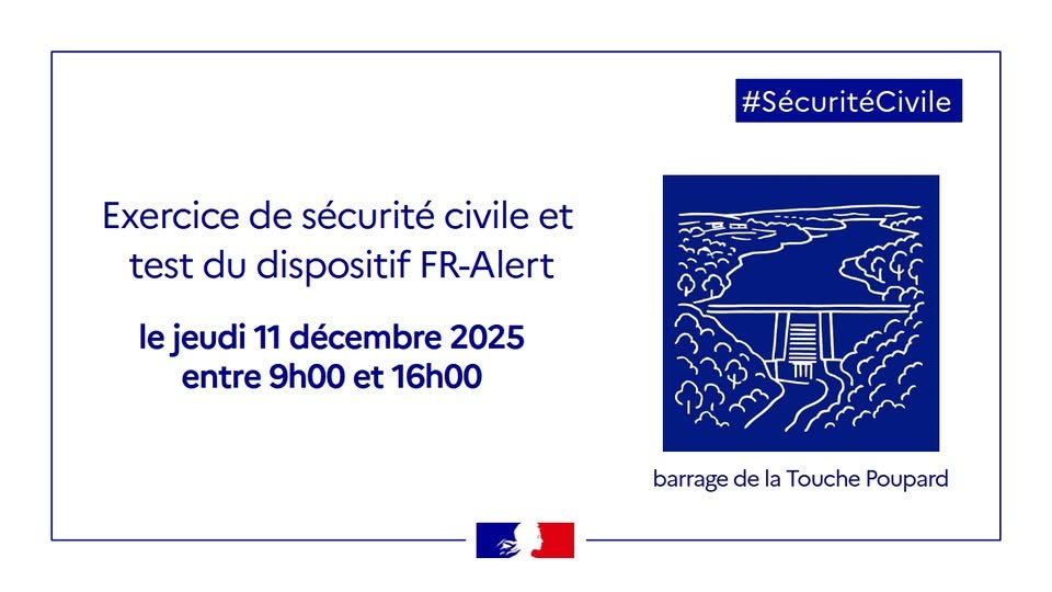 Ce jeudi 11 décembre, dans le cadre d’un exercice concernant le barrage de la Touche Poupard, le dispositif d’alerte Fr-Alert a été déclenché.
