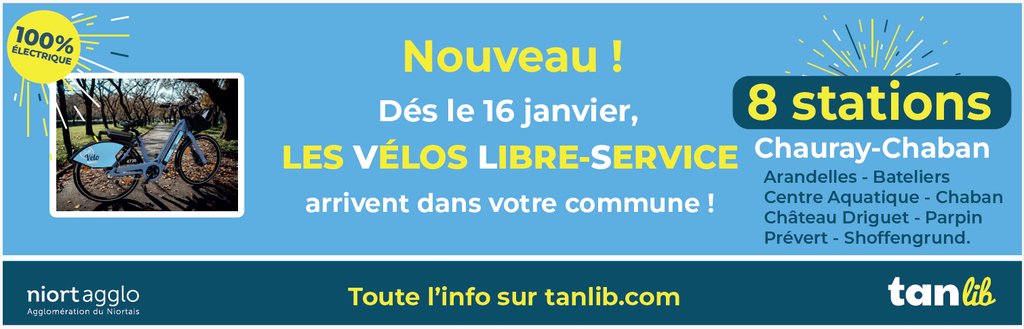 ☝ NOUVEAU ! 8 nouvelles stations de vélos libre-service sont à votre disposition, à compter de ce vendredi 16 janvier sur la commune de Chauray.