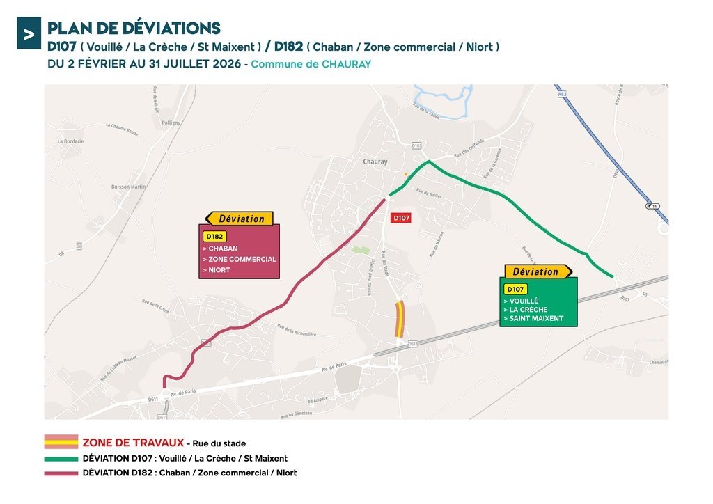 - Les arrêts Schöffengrund et Chauray Parpin ne sont pas desservis. Arrêt le plus proche "Versaines" au niveau du n° 100 rue du Stade à Chauray.