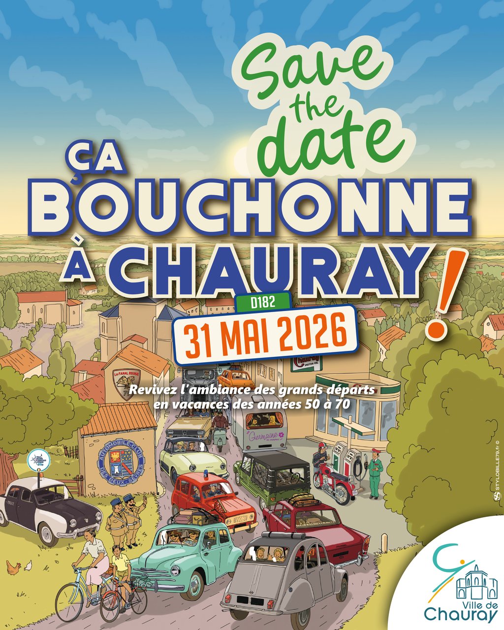 📢 Rendez-vous le dimanche 31 mai prochains, pour la 3ème édition du bouchon historique de Chauray, reconstitution des embouteillages emblématiques des années 1960, notamment lors des départs en vacances. 🚗🛵🛻🚲🚙