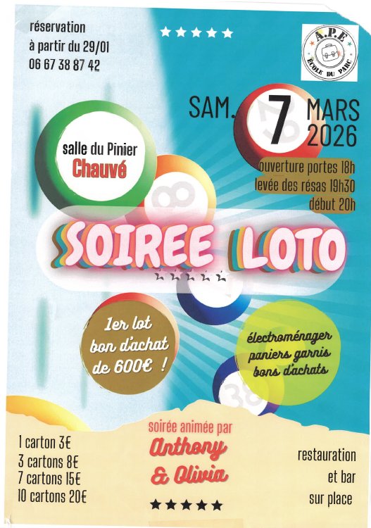 L'A.P.E vous invite à partager un moment convivial, festif et plein de surprises lors de son grand loto !