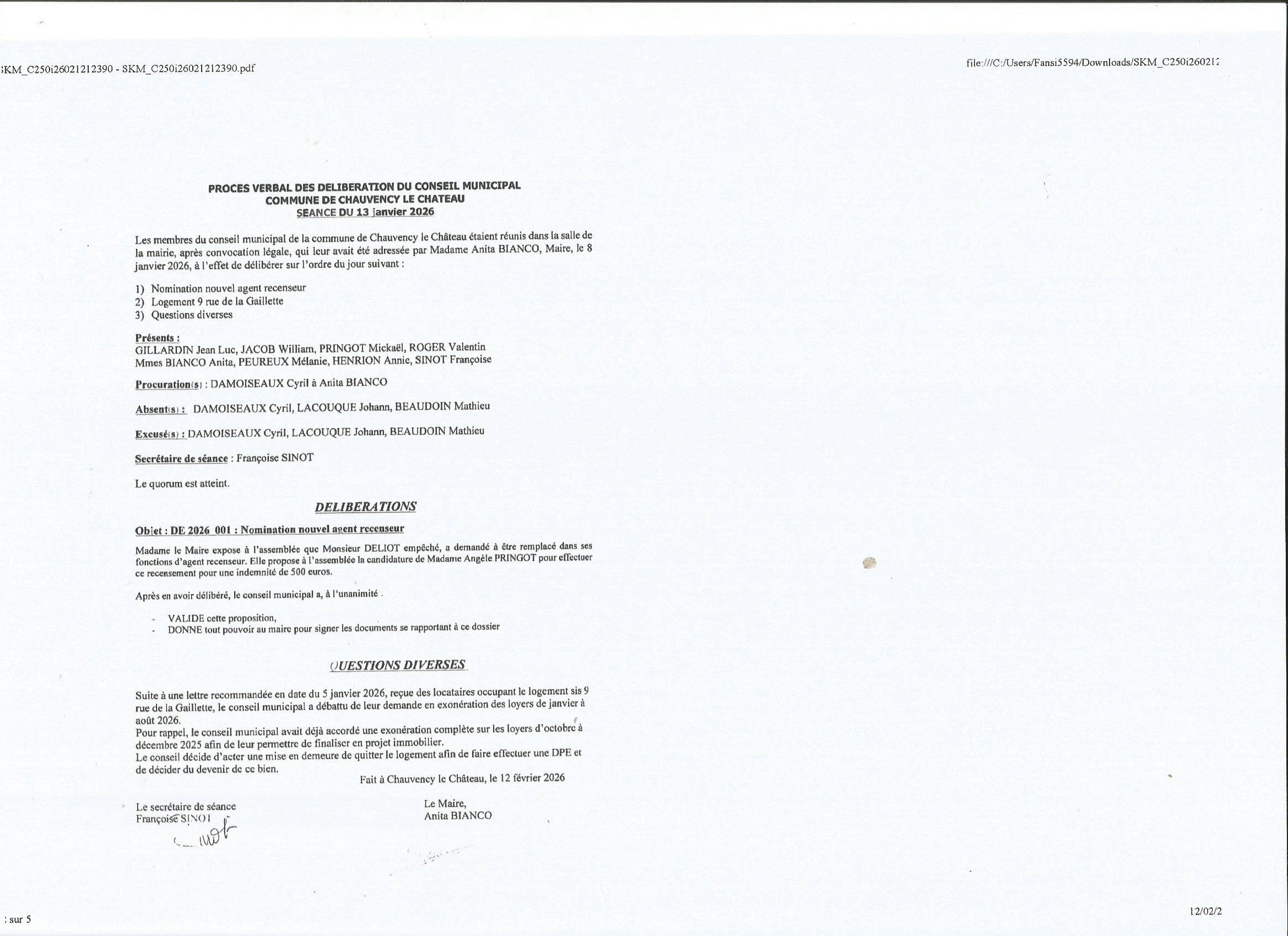 COMPTE RENDU CONCEIL MUNICIPAL DU 13/01/2026
