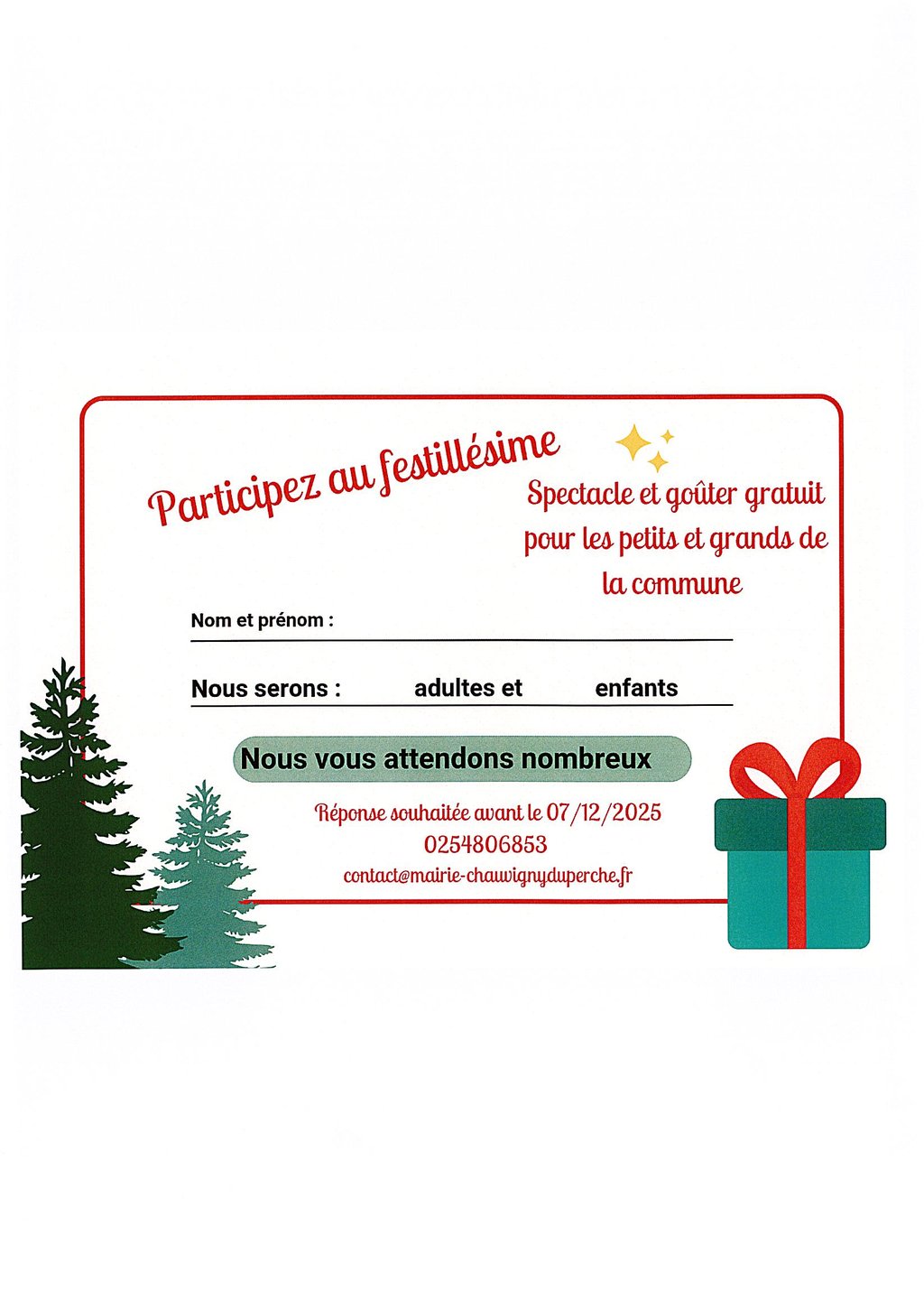 Le spectacle Festillésime de Noël, le 14 décembre à 15h00 à la salle des fêtes, sera suivi d'un goûter gratuit pour les petits et grands de la commune.