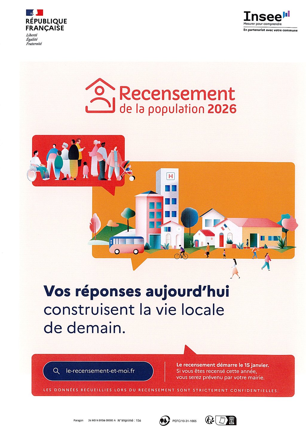 Le recensement de la population sur notre commune aura lieu du 15 janvier au 14 février 2026.