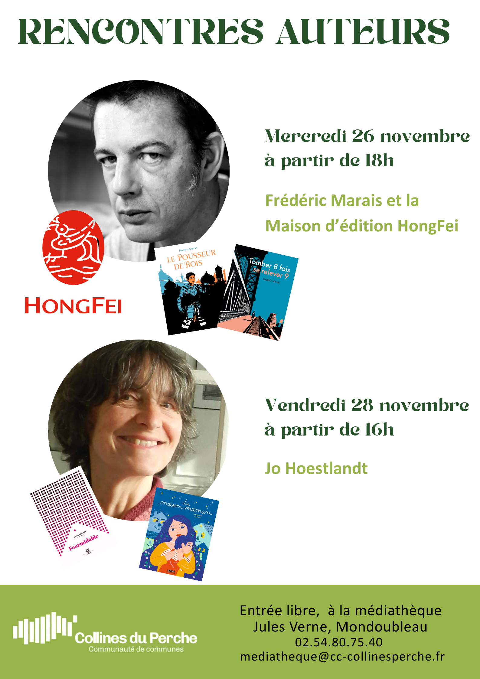 Entrée libre, informations via la médiathèque : 0254807540 mediatheque@cc-collinesperche.fr