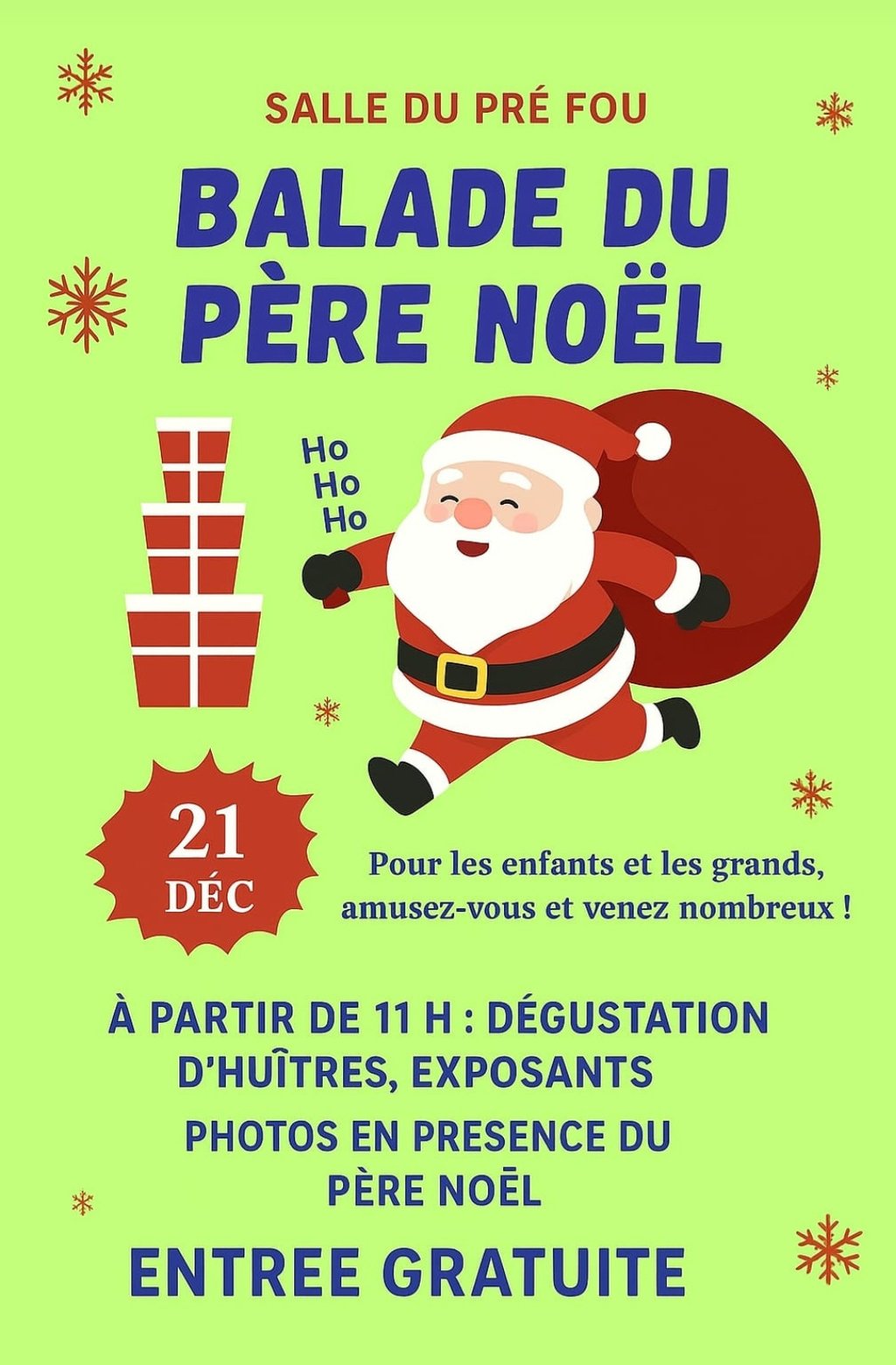 Le 21 décembre à partir de 11h, balade du Père-Noël à la salle du Pré Fou de Chavagnes les Redoux.