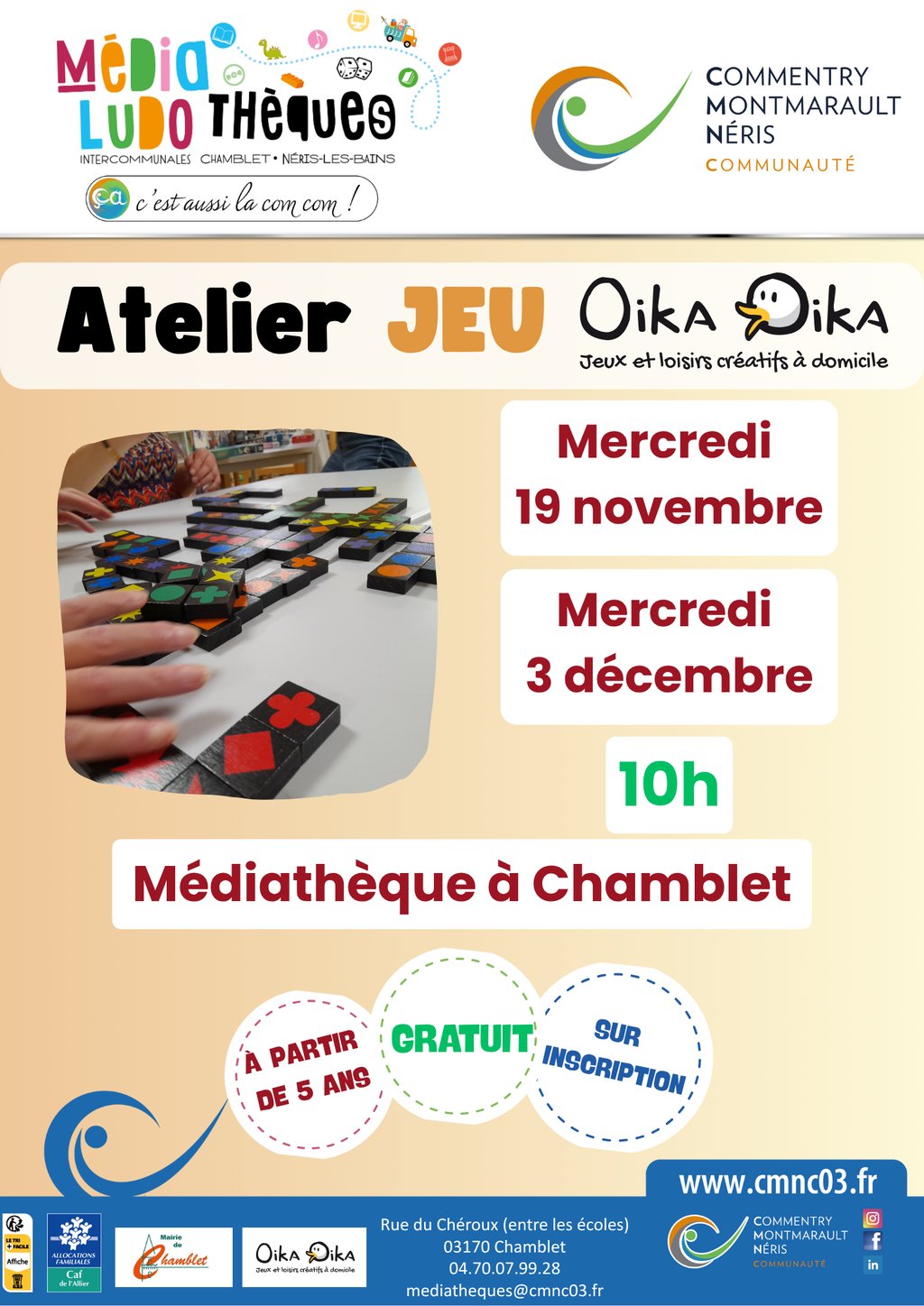 ATELIER JEU OIKA OIKA À LA MÉDIATHÈQUE INTERCOMMUNALE À CHAMBLET