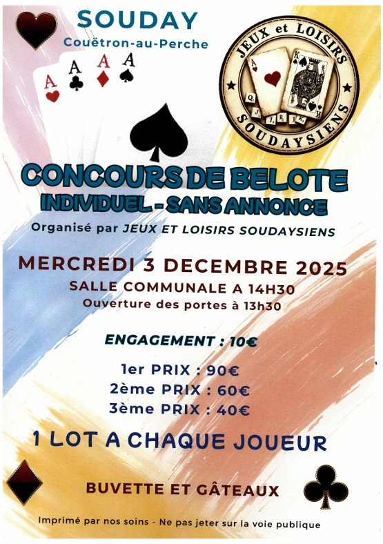 CONCOURS DE BELOTE INDIVIDUEL - SANS ANNONCE - 41 SOUDAY