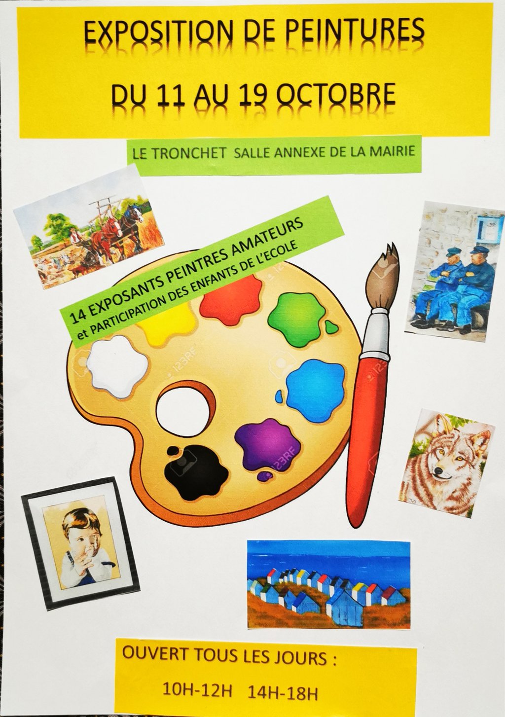 Belle exposition de tableaux de 14 artistes, tous amateurs habitant LE TRONCHET. Participation des enfants de l’école et de la doyenne de la commune, Odette 101 ans.