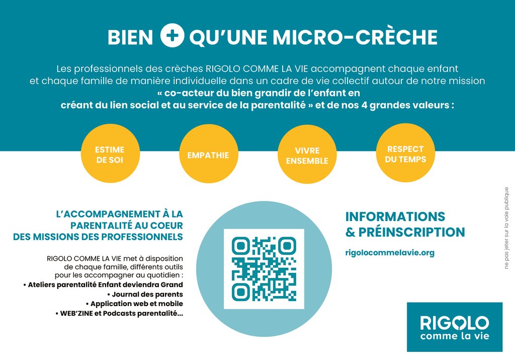 Depuis 2005, Rigolo Comme La Vie, acteur local engagé dans le bien grandir des enfants et l’accompagnement des parents, développe des crèches et micro-crèches dans une mission de service public pour les collectivités et les entreprises.