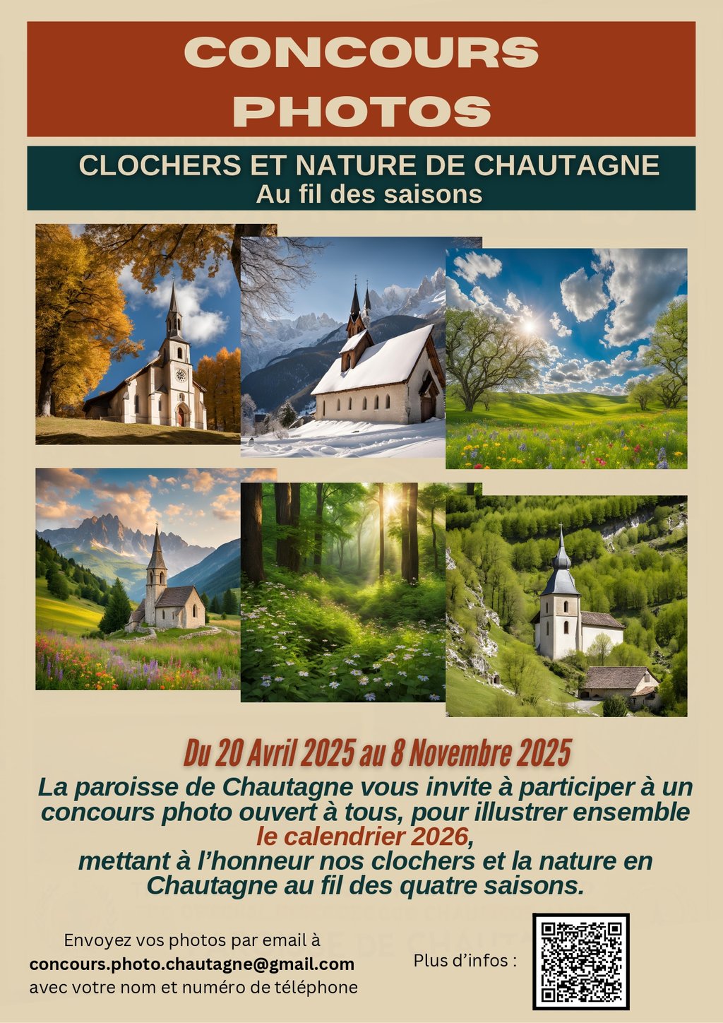 La paroisse de Chautagne vous invite à participer à un concours photo ouvert à tous, pour illustrer ensemble le calendrier 2026, mettant à l'honneur nos clochers et la nature en Chautagne au fil des 4 saisons.