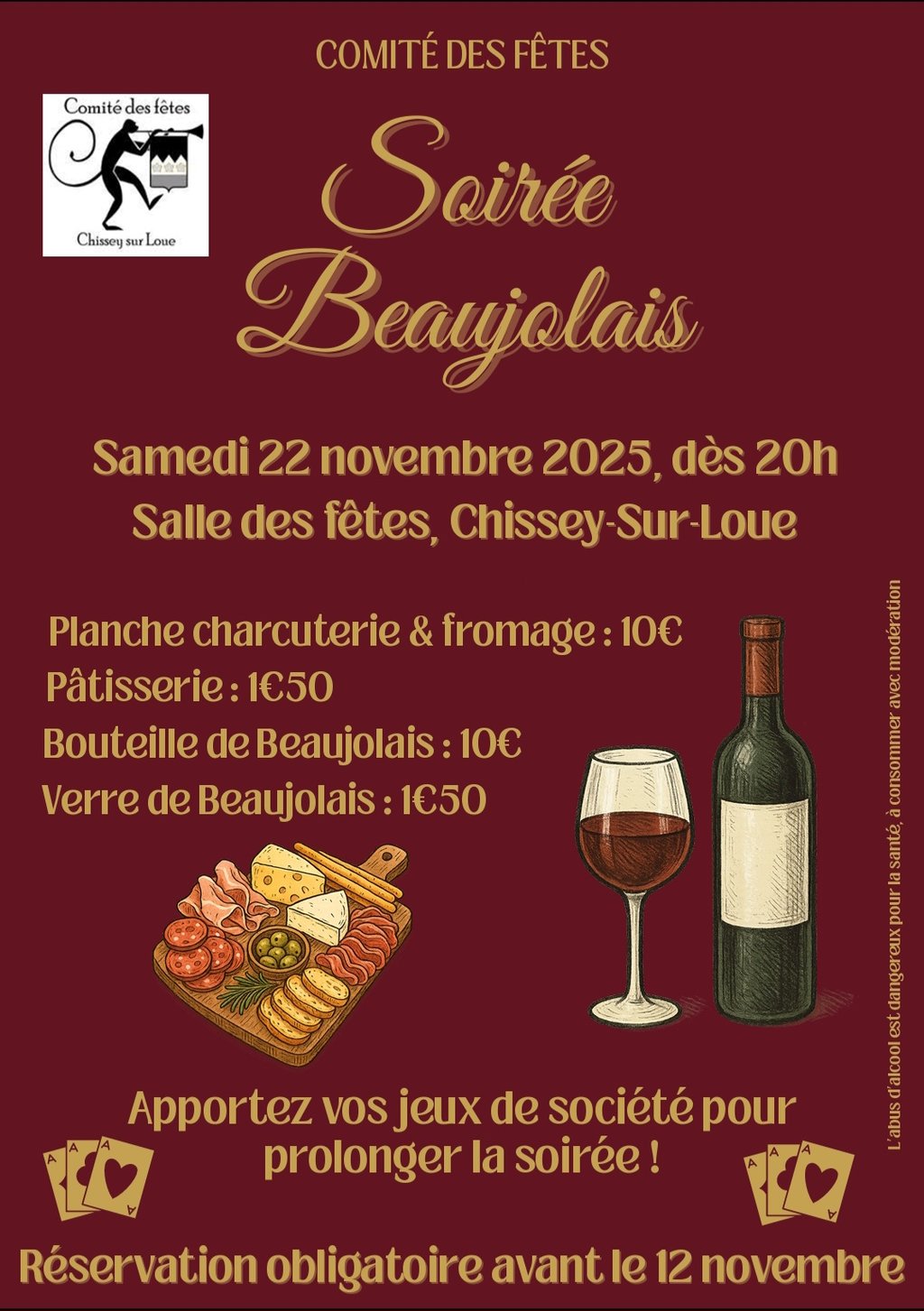 SOIREE BEAUJOLAIS samedi 22 novembre à partir de 20h à la salle des fêtes: