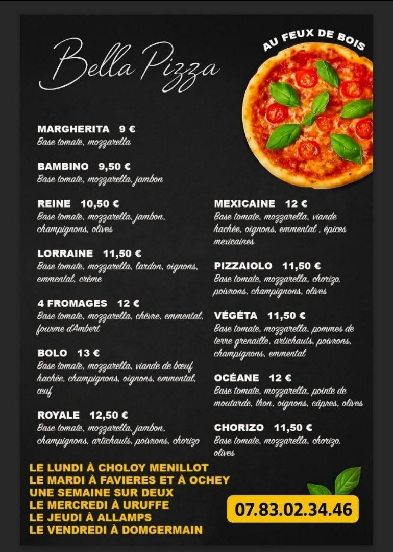 Tous les lundis soir de 18 à 21h à côté de la Mairie à Choloy-Ménillot.