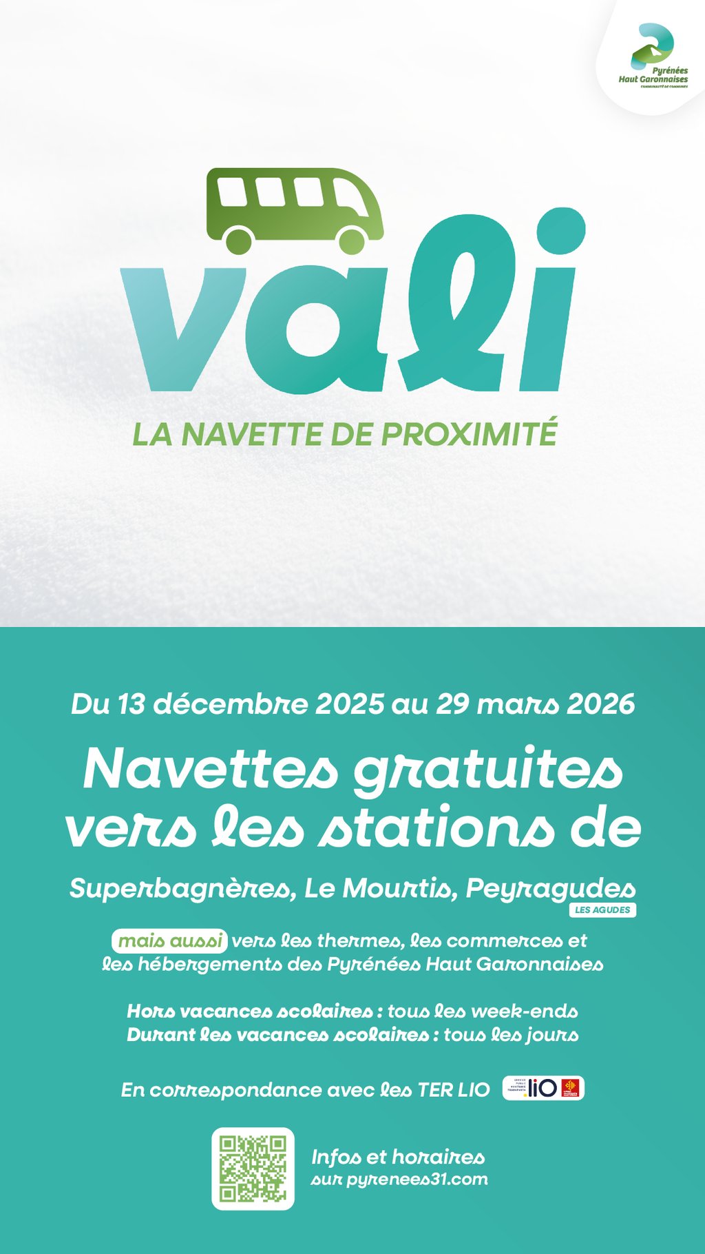 Dès ce samedi 13 décembre 2025, le service de navettes gratuites VALI sera mis en place pour l’ensemble de la saison d’hiver. Ce dispositif facilitera l’accès aux stations de ski Superbagnères, Peyragudes (versant Agudes) et Le Mourtis, ainsi que les déplacements au cœur de Luchon, grâce à une boucle dédiée.