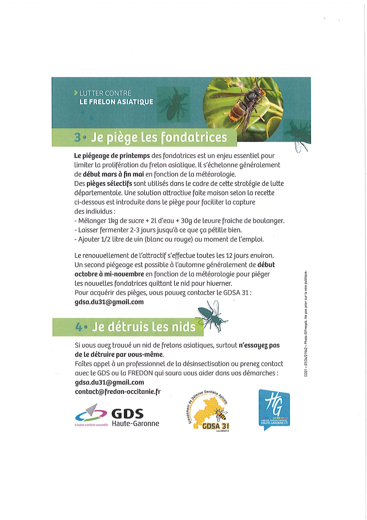 Ce piégeage s’inscrit dans un plan de lutte global visant à neutraliser les fondatrices de frelons asiatiques dès leur émergence printanière. Cette action tente de limiter le nombre de colonies pendant la saison. Pour atteindre une efficacité optimale, ce piégeage devra être coordonné avec une recherche des nids et une protection active des ruchers en saison (muselières, filets harpes électrique…).