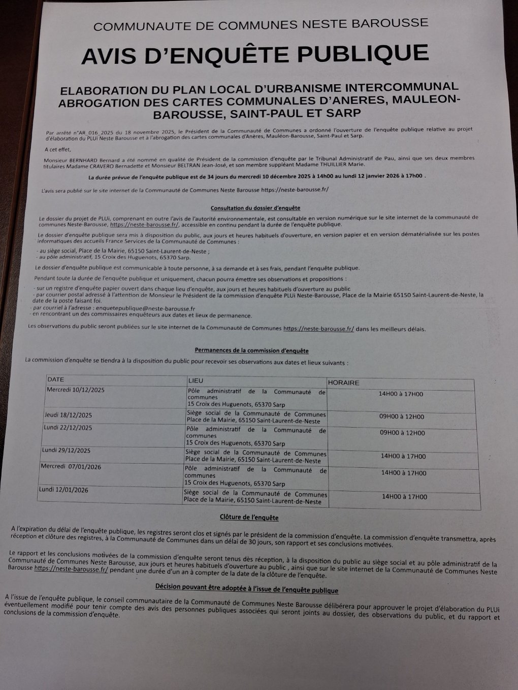 - sur les registres d'enquête publique présents à Sarp et Saint-Laurent-de-Neste