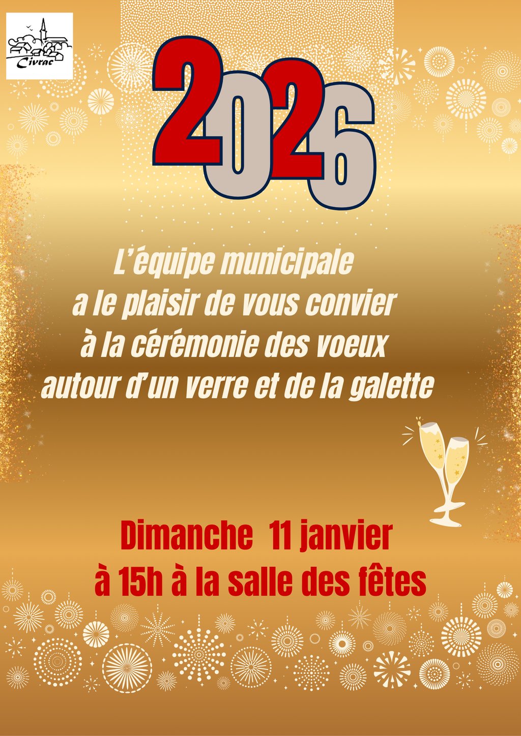 La cérémonie des vœux aura lieu le dimanche 11 janvier à 15h à la salle des fêtes.