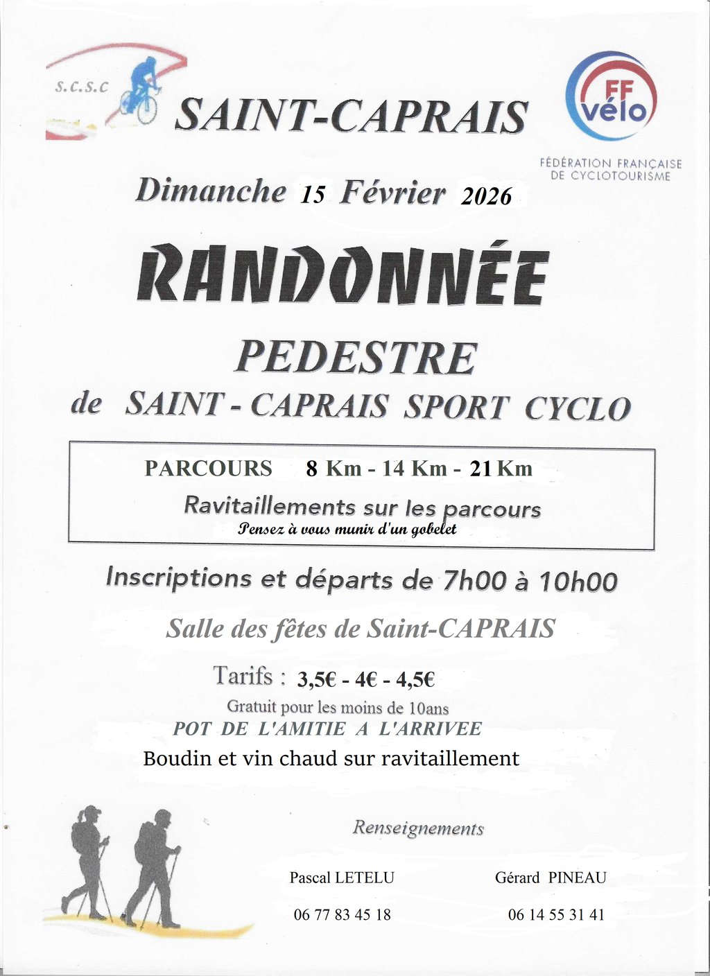 Randonnée organisée par Saint-Caprais Sport Cyclo : 8 kms – 14 kms – 21 kms