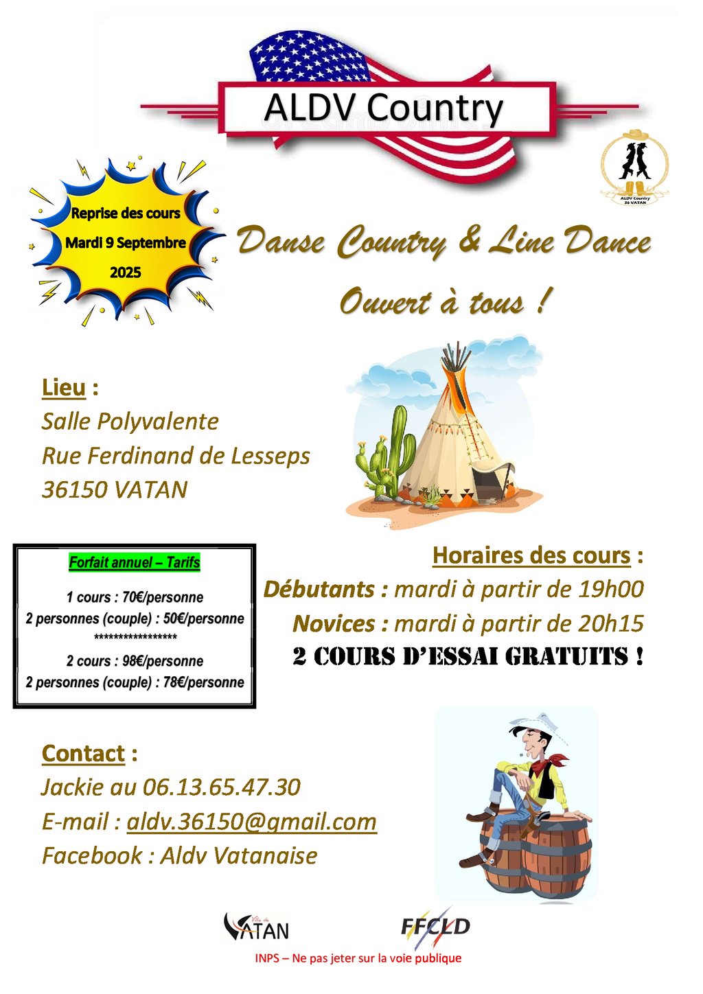 COURS DE DANSE COUNTRY et LINE DANSE pour deux niveaux