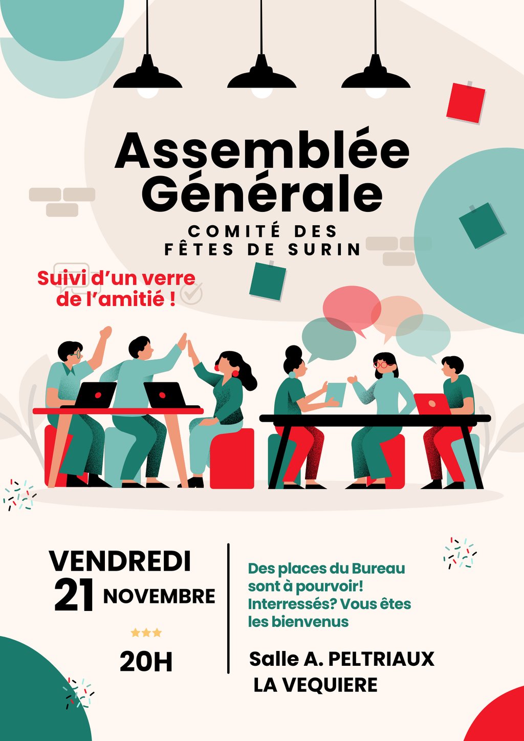 Le comité des fêtes de Surin vous convie à son assemblée générale annuelle le vendredi 21 novembre à la salle Albert Peltriaux de La Véquière.