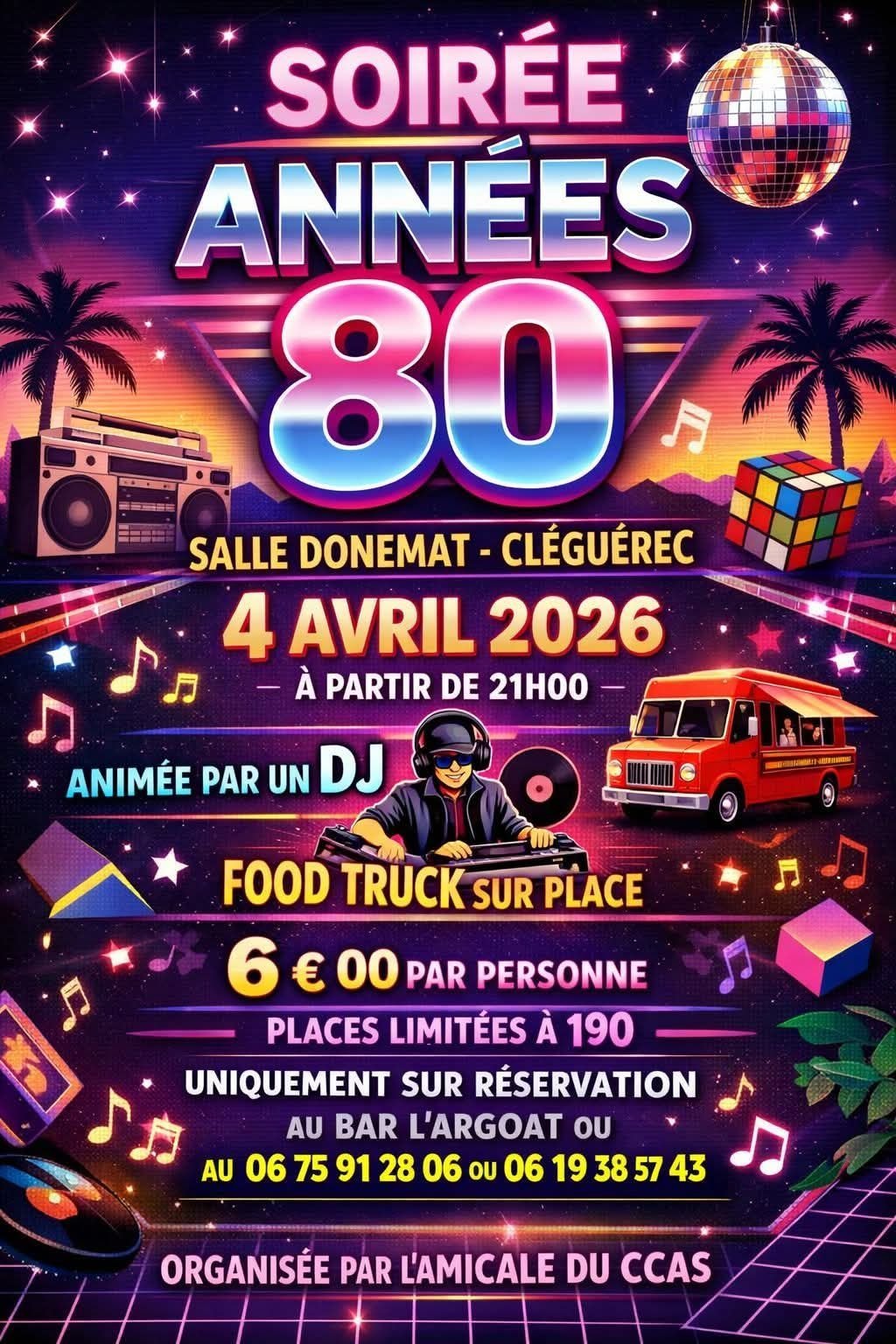 Soirée années 80 animée par un DJ avec foodtruck sur place.