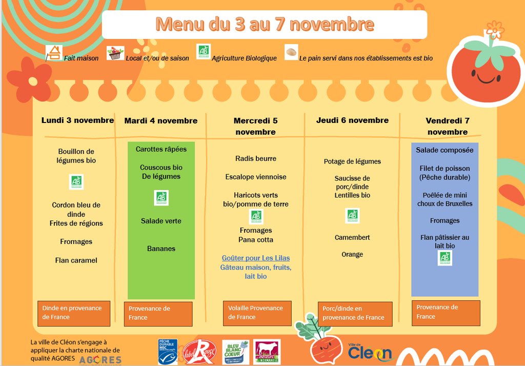 Vous trouverez, ci dessous, le menu de la restauration scolaire pour cette semaine de retour en classes.